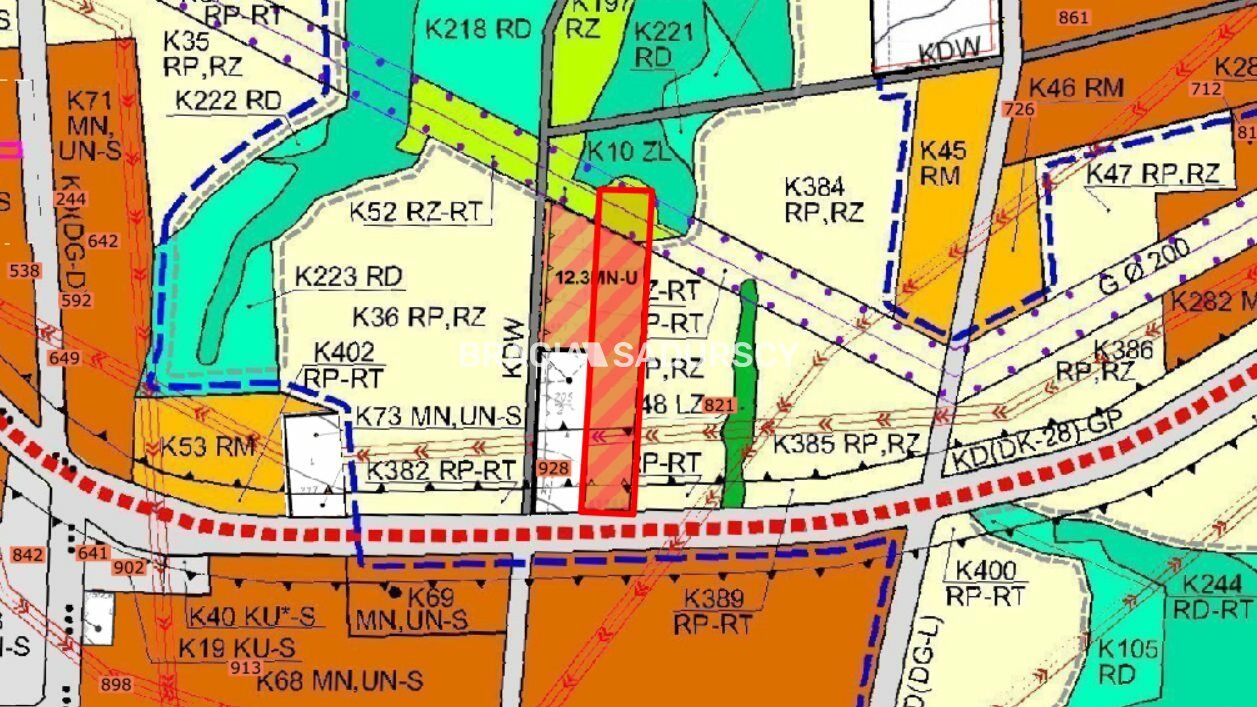 Zgodnie z MPZP działka leży w terenie zabudowy mieszkaniowo-usługowej oznaczonym symbolem MN-U z podstawowym przeznaczeniem pod zabudowę mieszkaniową jednorodzinną lub usługową z wykluczeniem: